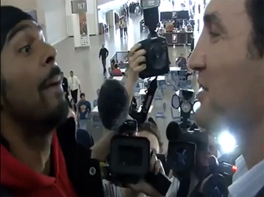 Снимка varna-sport.com от видеоклипа в Интернет Клитчко и Хей се гледат лошо преди сблъсъка на титаните (WBO WBA IBF IBO TITLE) тази вечер от 22 ч при 30% отстъпка от цените в менюто на Bench! |
