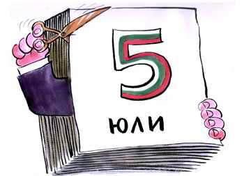 Днес е 5 юли, денят на който преди 2 години Бойко Борисов бе качен във властта. С голяма еуфория, като сините, като Царя. 2 години по-късно Бойко е геноцид за България, защото спазва заповедите на господарите си за невидимата война срещу бедния българин. За тази нова форма за масово унищожение чeти по-долу, а сега виж заглавията на днешната преса: ВЕСТНИЦИТЕ на 5 юли (вторник): СЛУГИНСКА ПРЕСА: 24 часа (с охрана фирма "Ипон"): б.а. Нито дума за Денят без Бойко Борисов, 5 юли, обявен във Фейсбук по повод точно 2 г от управлението на партия ГРОБ, Митрополит Дометиан: Премиер по евангелски, ТРУД (с охрана фирма "Ипон"): б.а. Нито дума за Денят без Бойко Борисов, Църквата за Борисов: Смел, възхитителен, градивен и народополезен, ТЕЛЕГРАФ: б.а. Нито дума за Денят без Бойко Борисов, 5 юли, СТАНДАРТ: б.а. Нито дума за Денят без Бойко Борисов, 5 юли, Дянков готов за втори мандат, похвали НАП и митниците, МОНИТОР: б.а. Нито дума за Денят без Бойко Борисов, 5 юли, Бойко: Строим църкви въпреки кризата, ДНЕВНИК: Нито дума за Денят без Бойко Борисов, 5 юли, Цветанов ще чака проверка дали дарители на МВР са разследвани ОПОЗИЦИОННА ПРЕСА: СЕГА: Борисов опитва да прави политика чрез футбола, НОВИНАР: Синята коалиция пак се моли на Бойко Борисов, Този път се надяват да "договорят" Румен Христов за кандидат за вицепрезидент на ГЕРБ, ДУМА:
